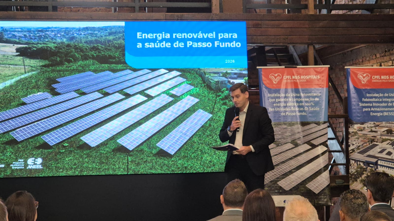 Está sendo apresentada a segunda fase do Projeto “CPFL RGE nos Hospitais”. Trata-se de uma planta de geração solar centralizada. O investimento é R$ 2,8 milhões. Outro projeto diz respeito ao Hospital Municipal Doutor César Santos, também com energia solar, através da utilização de bateria.
