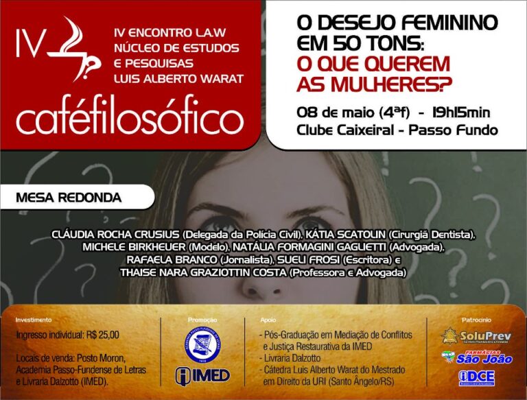 A próxima edição do Café Filosófico está marcada para o dia 08 de maio. Desta vez, o tema escolhido foi “O desejo