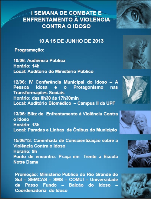 Entre os dias 10 e 15 de junho, em Passo Fundo, serão realizados diversos eventos durante a Semana de Combate e Enfrentamento da