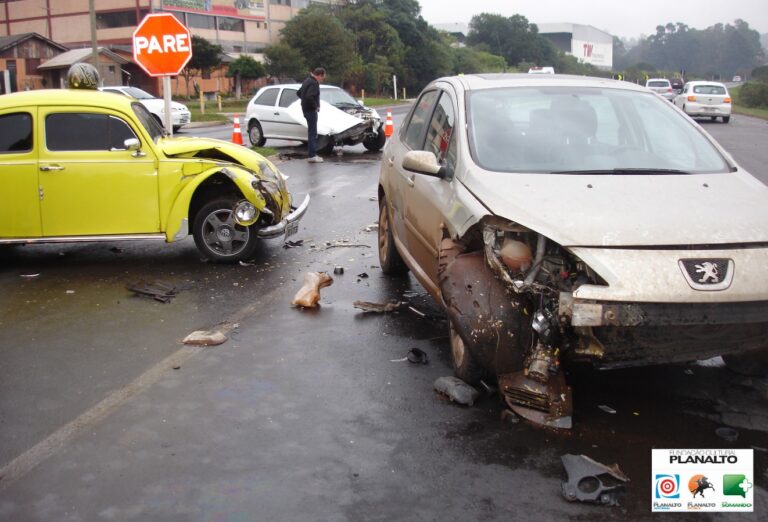 Na manhã desta segunda-feira (10), um acidente de trânsito envolveu três automóveis e uma motocicleta na BR 285, no trevo de acesso ao