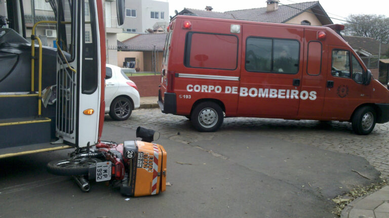 A condutora de uma motocicleta de 25 anos, colidiu frontalmente com um coletivo urbano da linha UPF Integração – Centro IE, que