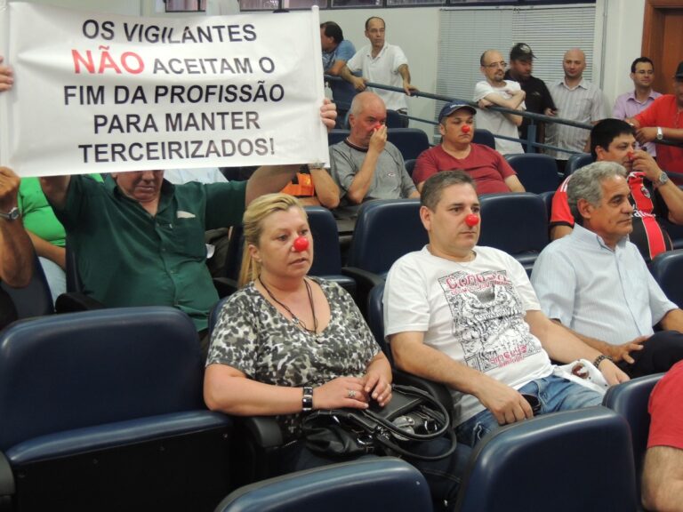 Em sinal de protesto pelo encaminhamento de um projeto que extingue os cargos de servente e vigilante e retira algumas atribuições da