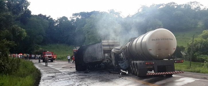 No final desta terça-feira,14, dois caminhões colidiram frontalmente na localidade Evangelista na ERS 129, entre as cidades de Serafina Corrêa e Casca, no