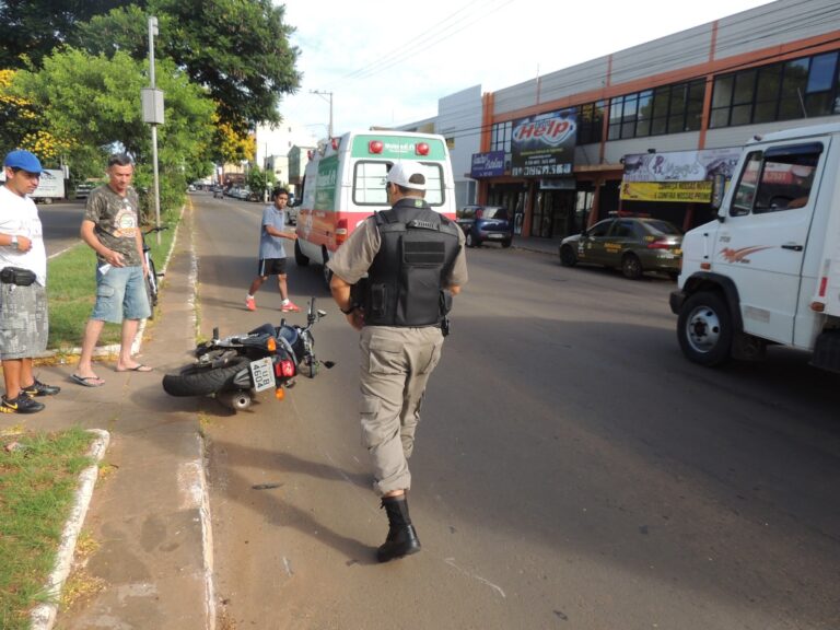 Na manhã de hoje, a motociclista, Ana Paula,20 anos, ficou ferida ao colidir com uma caminhonete na avenida Presidente Vargas esquina com