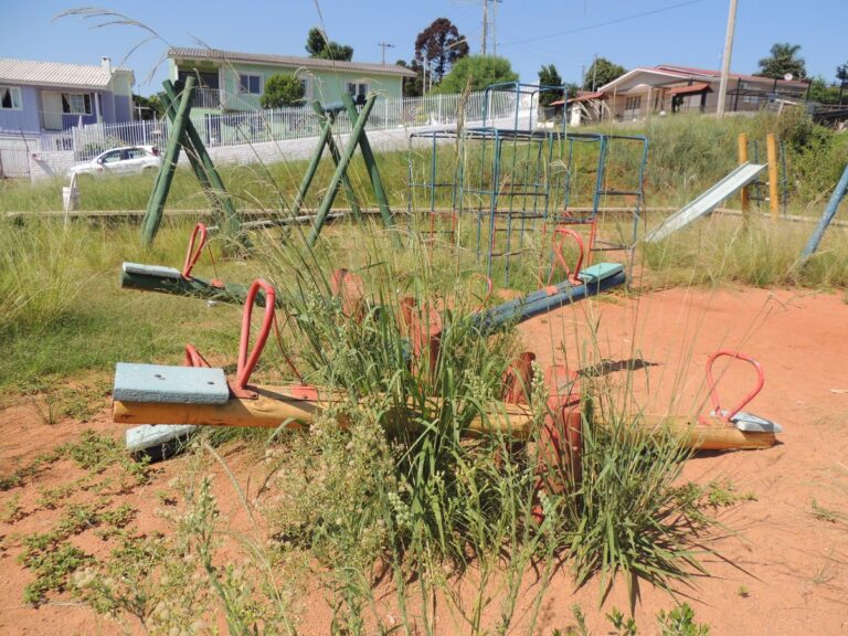 A população do bairro Nenê Graeff está sem poder fazer uso de uma praça no bairro. O matagal tomou conta, alguns bancos