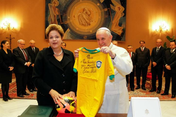 A presidente Dilma Rousseff participou de um encontro nesta sexta-feira, no Vaticano, com o Papa. A presidente presenteou o papa Francisco com uma