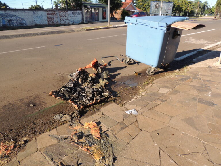 Mais um contêiner de lixo incendiado em Passo Fundo. E novamente ao amanhecer, após as festas da madrugada.Eram 6h da manhã quando