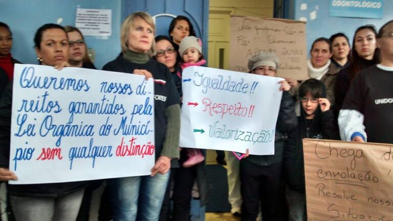 Cerca de 70 servidores se reuniram em protesto em frente ao Hospital Municipal no final da manhã desta quinta-feira, 26. Eles reivindicam a equiparação
