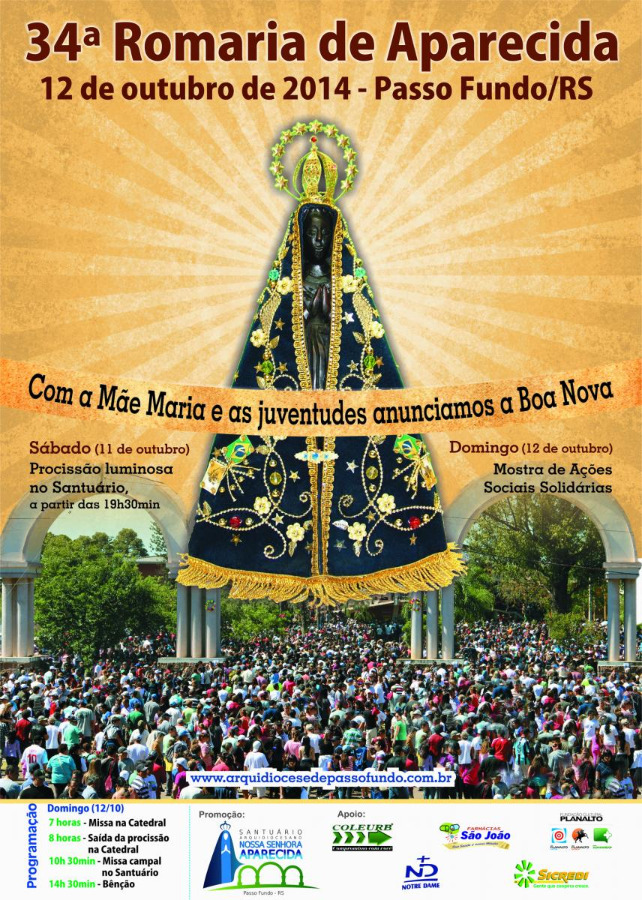 Acontece no próximo domingo, dia 12, a trigésima quarta Romaria Arquidiocesana de Nossa Senhora Aparecida. Uma das novidades será a Procissão Luminosa