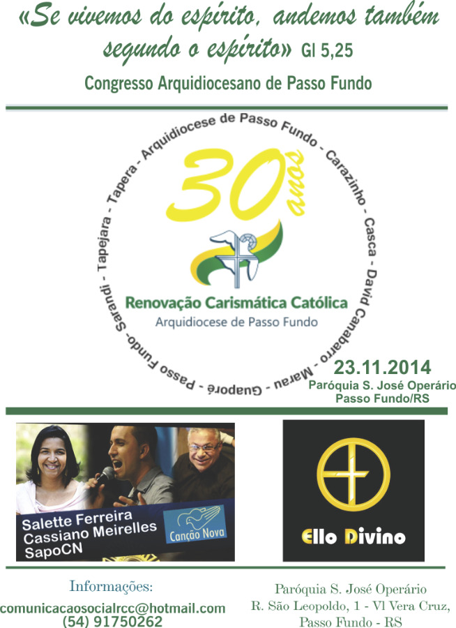 Neste domingo, 23, acontecerá no ginásio da Paróquia São José Operário, do bairro Vera Cruz, o Congresso Arquidiocesano comemorativo aos 30 anos