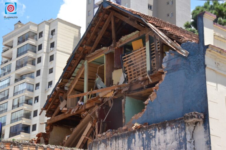 Parte de uma casa antiga desabou por volta das 12h30 de quarta-feira, 14, na rua General Osório, Centro de Passo Fundo. De
