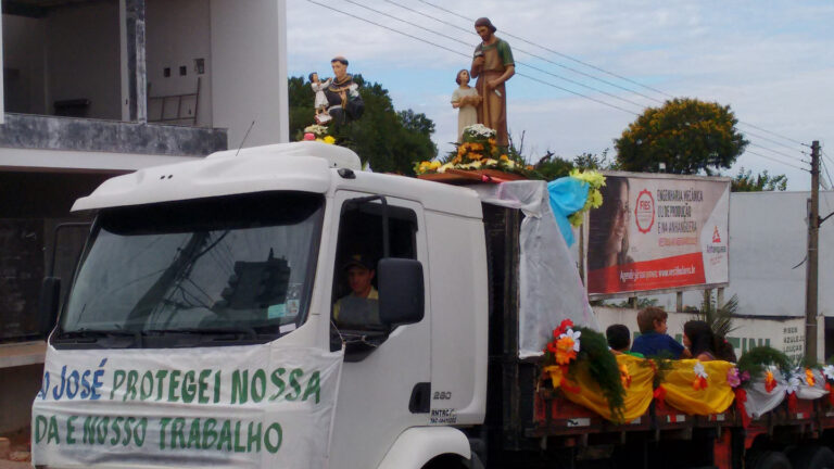 Acolhida dos padroeiros e padroeiras de todas as comunidades e procissão motorizada do silo do Cesa com a imagens dos padroeiros São