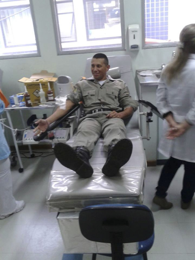 Dezessete policiais da Brigada Militar de Passo Fundo organizaram uma excursão até o municipio de Cruz Alta para doar sangue para a