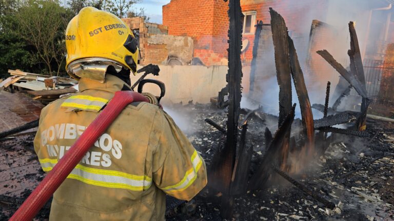 Uma pequena casa de madeira foi completamente destruída por um incêndio na avenida Caravelle, próximo à avenida Giavarina, no bairro São Luís