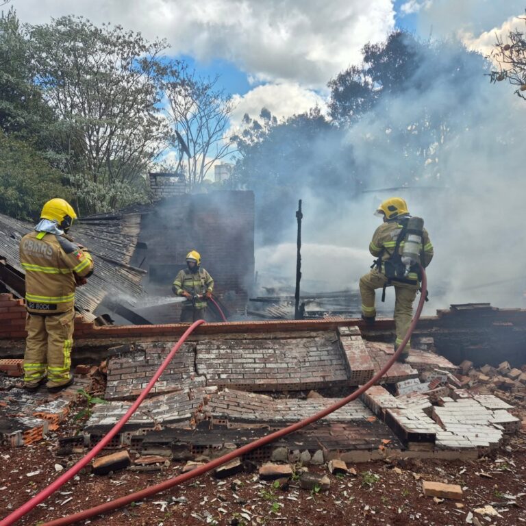 No início da tarde desta segunda-feira (22), uma cada doi completamente consumida pelo fogo em Passo Fundo. A residência ficava de fundos,