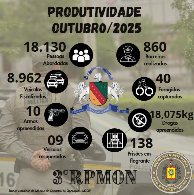 A Brigada Militar, por meio do 3º Regimento de Polícia Montada (3º RPMon), registrou expressiva redução dos principais índices criminais em Passo