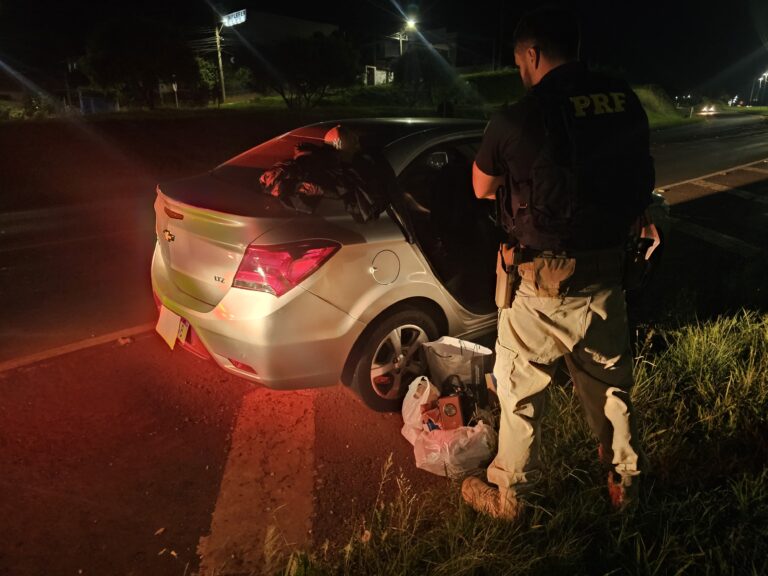 Na noite da Segunda-feira (23), a Polícia Rodoviária Federal prendeu um homem de 38 anos que estava foragido da Justiça e transportava
