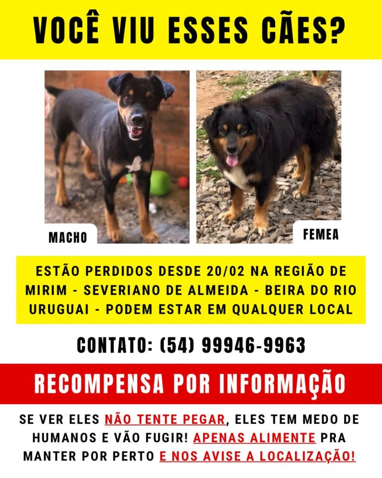 Uma força-tarefa está sendo realizada para localizar cães que fugiram na região da Linha Mirim, em Severiano de Almeida, após serem recentemente