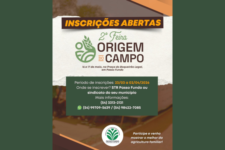 O Sindicato dos Trabalhadores Rurais de Passo Fundo, Coxilha e Mato Castelhano informa que estão abertas as inscrições para a Feira da