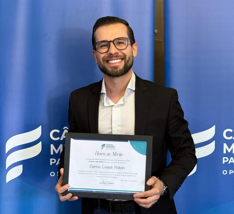 A Câmara de Vereadores de Passo Fundo concedeu a Honra ao Mérito ao advogado criminalista Fabrício Lorandi Pinheiro, em reconhecimento aos seus
