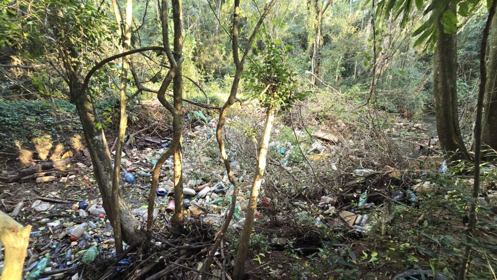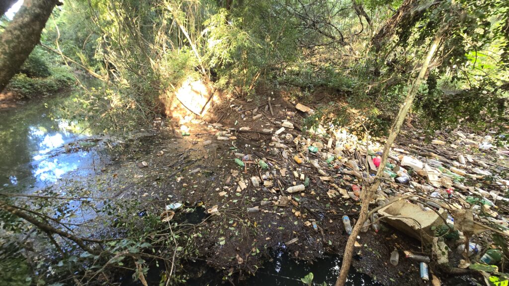 No local, foi identificado um cenário de grande acúmulo de lixo, além de forte odor característico de resíduos em decomposição. Também foram encontrados diversos peixes mortos, de diferentes espécies, espalhados ao longo do arroio, indicando a degradação do ambiente aquático.