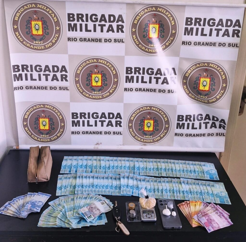 Durante a ação, os policiais apreenderam um veículo Chevrolet Onix, uma porção de crack, duas porções de cocaína, uma balança de precisão, um telefone celular e a quantia de R$ 18.979,00 em dinheiro.