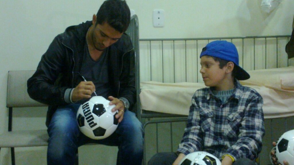 A rotina do Serviço de Oncologia Pediátrica do HSVP mudou com a presença ilustre do jogador da Roma, Marquinhos. Olhos arregalados e sorriso estampado no rosto mostraram a emoção dos pequenos pacientes ao receber o jogador. Entre brinquedos, livros infantis, eles não perderam tempo para serem fotografados ao lado do ídolo. Com bolas de futebol autografadas em mãos, o ápice da alegria foi geral.