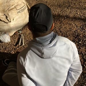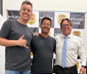 Na foto o apresentador do programa, Gringo do Povo, e os integrantes da banda Céu e Cantos em frente ao ônibus utilizado para transportar os artistas para os shows.