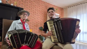 Na manhã desta quarta-feira (7), os comunicadores Ed Silva e Kaique Albuquerque realizaram uma entrevista exclusiva com o músico Plínio Mena Barreto do Amaral, conhecido como Tio Mena. A conversa ocorreu na residência do instrumentista, em Passo Fundo, onde ele e sua família receberam a equipe do Grupo Planalto de Comunicação para relatar sua trajetória pessoal e musical.