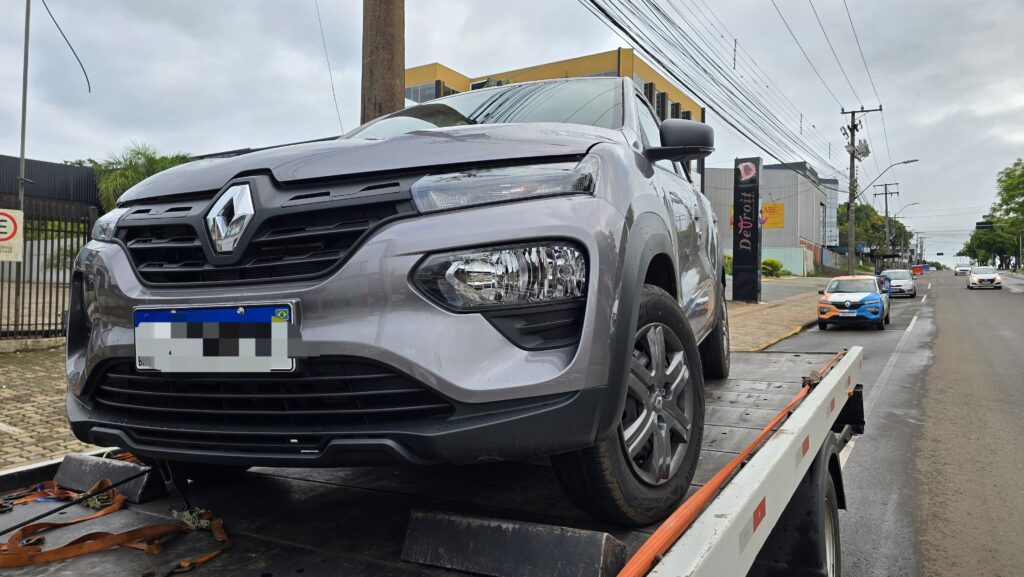 O Renault Kwid, com placas de Belo Horizonte, Minas Gerais, foi identificado como carro alugado e não possuía registro de furto.