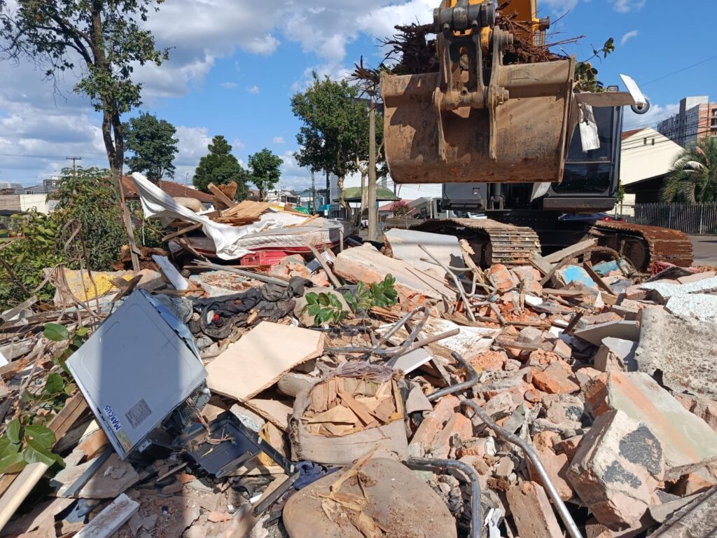 A Prefeitura de Passo Fundo realizou, na tarde desta quarta-feira (05), a demolição de um imóvel localizado na Praça Antônio de Quadros Martins, no bairro Vera Cruz. A ação ocorreu após indicação da Procuradoria-Geral do Município.