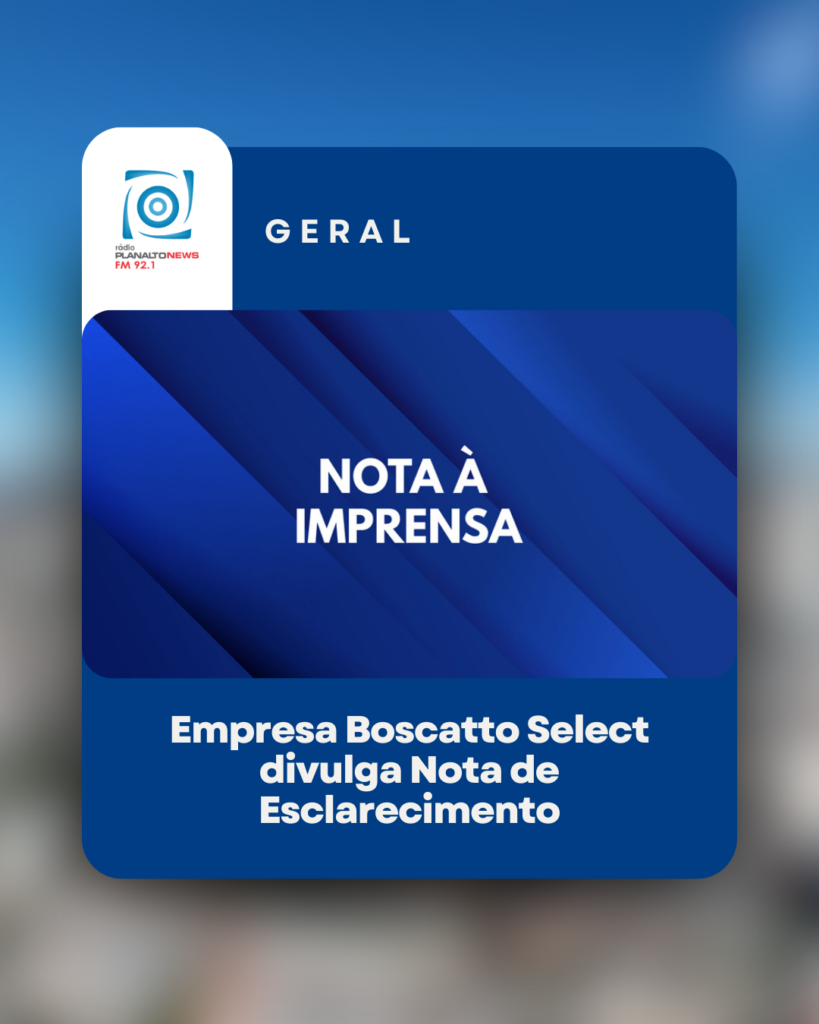 O representante da Boscatto Select se manifesta a respeito de notícias divulgadas em Passo Fundo sobre negociações de veículos envolvendo a empresa. O esclarecimento é feito à comunidade, apontando os devidos encaminhamentos adotados.