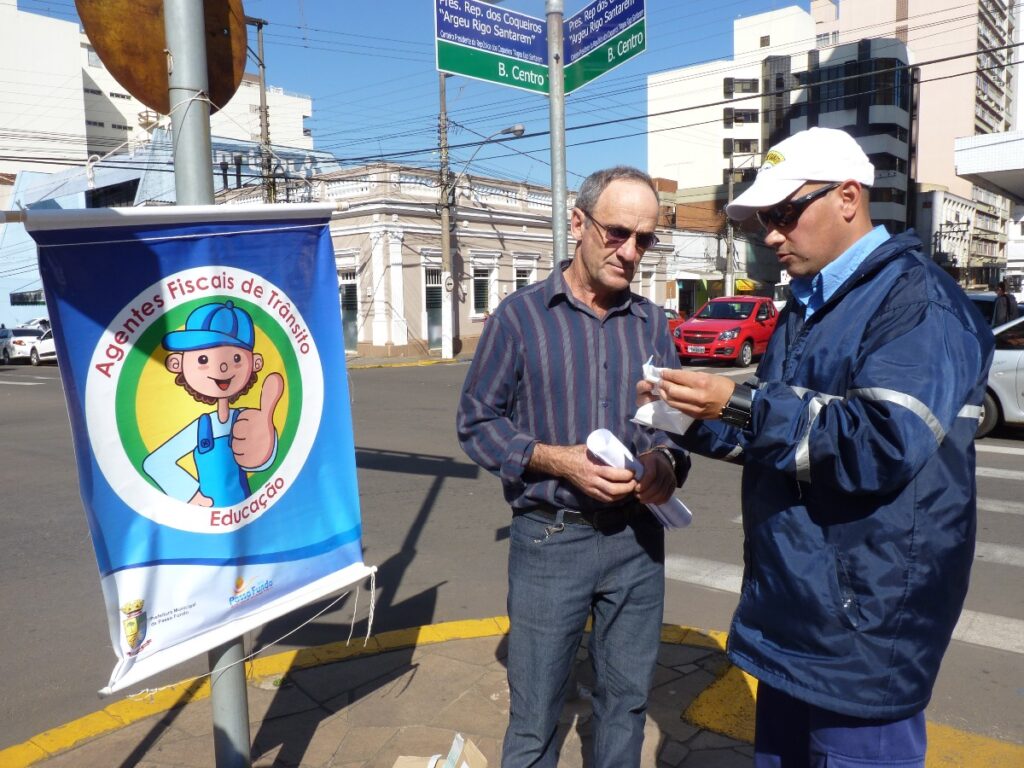 O Agente Fiscal de Trânsito, Emerson Drebes, entregou, junto com voluntários do setor de educação, folderes para os pedestres que atravessavam a rua no momento da ação. De um lado, para quem atravessasse na faixa, uma imagem positiva com a frase: “Parabéns! Você é um bom pedestre! Quem te espera em casa agradece!”. No lado oposto, frases de alerta, direcionadas às pessoas que atravessavam fora da faixa: “Cuidado! Você está em perigo! Alguém espera você em casa. Quer arriscar?”. “Esta ação visa tornar o trânsito mais humanizado, evitando problemas como atropelamentos que podem ser muito graves”, destacou Emerson.
