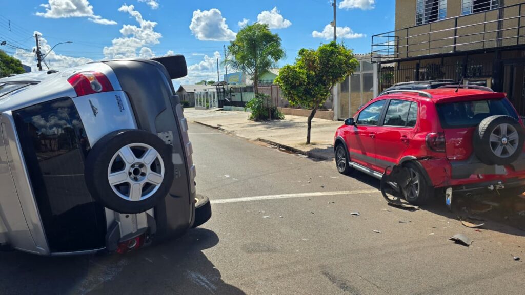 Na tarde desta terça-feira (13), um acidente de trânsito com tombamento foi registrado na rua Luís Lângaro, no Bairro Boqueirão, em Passo Fundo. A ocorrência aconteceu em frente ao despachante documental Sinal Verde e envolveu dois veículos Volkswagen CrossFox, ambos emplacados no município.