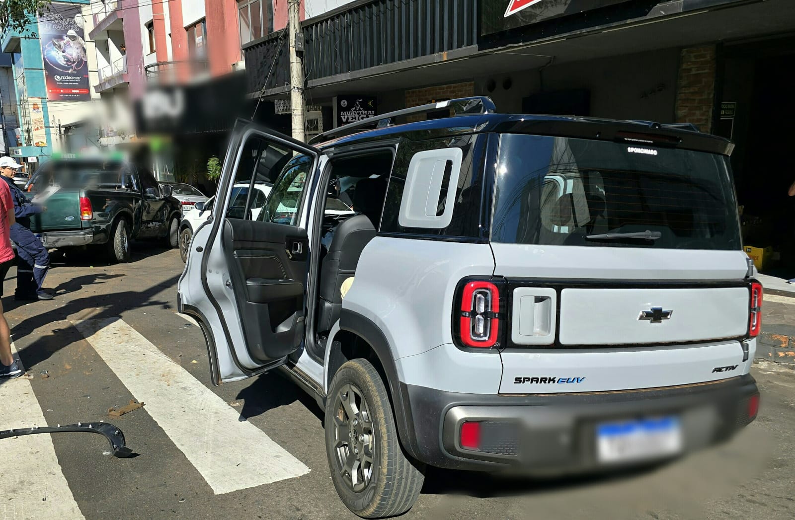 Acidente de trânsito entre três veículos é registrado no Centro de Passo Fundo A ocorrência envolveu três veículos: um Chevrolet Spark EV elétrico, com placas padrão Mercosul, uma Ford F250 XLT e um Hyundai Azera