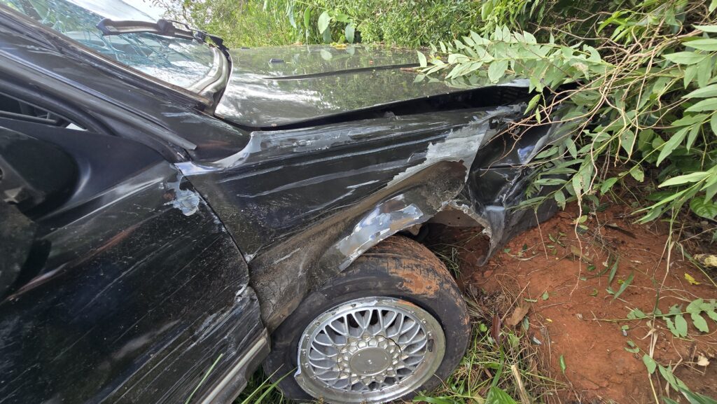 Com a colisão frontal, o motorista do Volkswagen Santana perdeu o controle do veículo, saiu da pista cerca de 50 metros do ponto de impacto e atingiu um barranco às margens da rodovia.