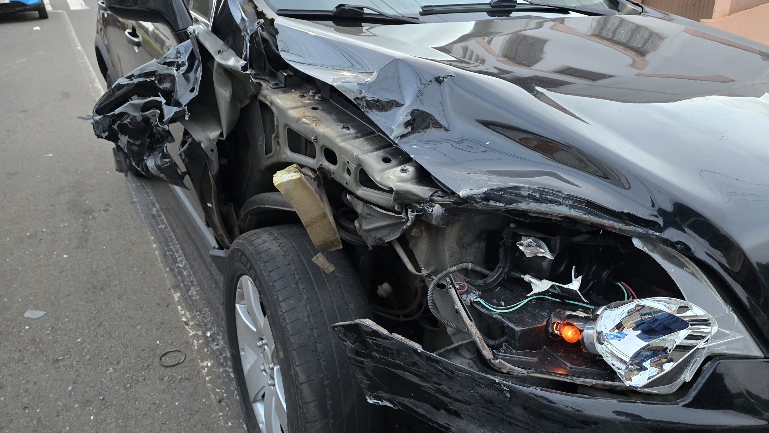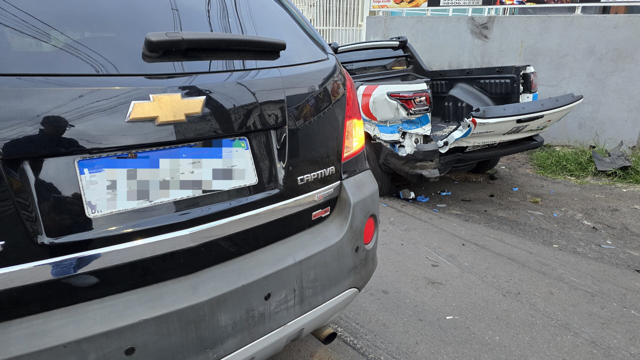 Após o impacto, o motorista da Captiva fugiu. O irmão do motorista da captiva compareceu ao local e forneceu informações necessárias para identificação. Os danos materiais foram de grande monta em ambos os veículos.