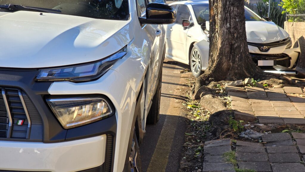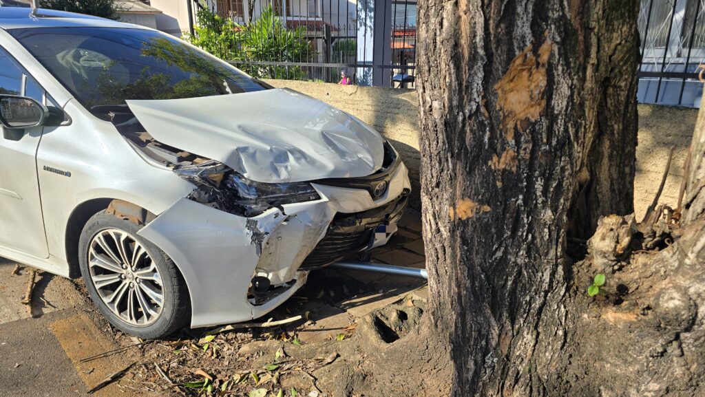 Conforme as informações apuradas no local pelo repórter Jeferson Vargas, o Toyota Corolla seguia pela rua Castanho da Rocha, no sentido centro-bairro, quando o motorista da Fiat Toro, que trafegava pela rua Uruguai, não teria respeitado a sinalização de parada obrigatória da via. O Corolla colidiu na parte frontal da Toro e, em seguida, atingiu uma árvore.