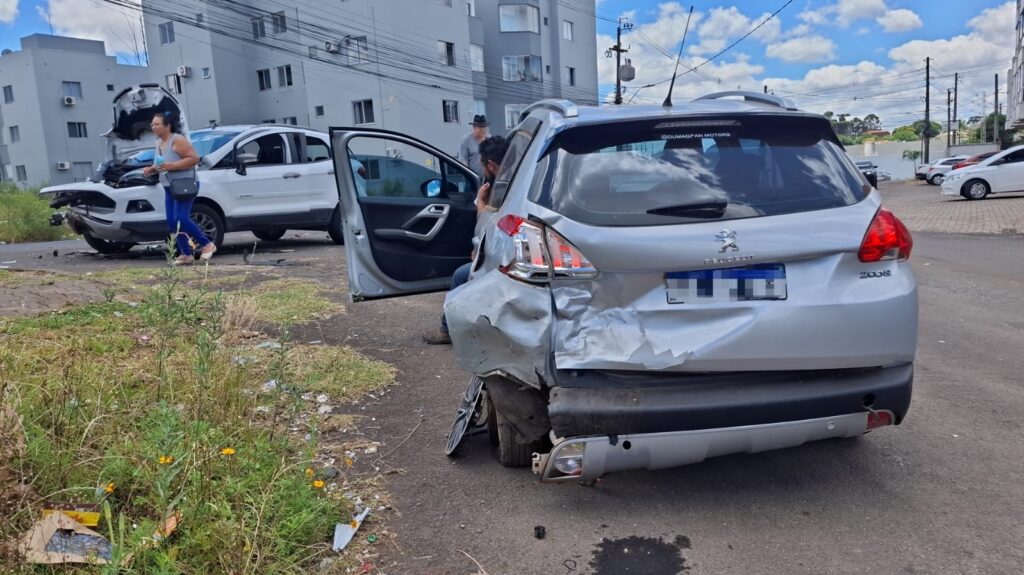 No início da tarde desta quinta-feira (11), uma Ford EcoSport branca e um Peugeot 2008 prata, emplacado em Balneário Camboriú, colidiram no cruzamento da Rua Morom com a Rua Arcelino de Oliveira Santos, no bairro Petrópolis, em Passo Fundo. A colisão deixou duas pessoas feridas.