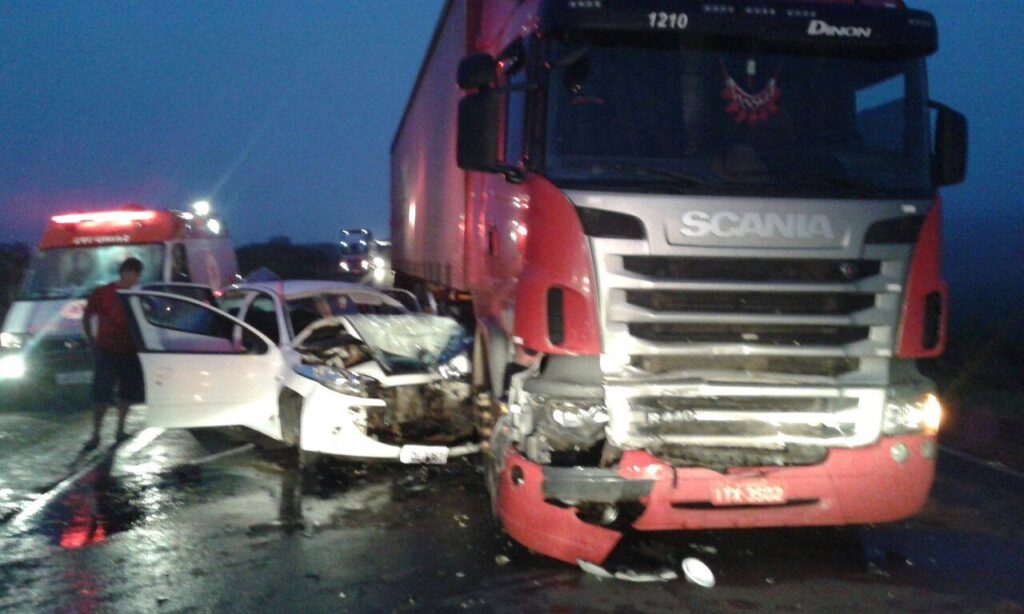 Segundo relatos o condutor de um automóvel Peugeot com placas de Tio Hugo IQE 7363 teria invadido a pista contrária atingido um caminhão Scania de cor vermelha com placas de Horizontina ITX 3502, O caminhão era conduzido no sentido a cidade de Carazinho com o impacto os quatro ocupantes do Peugeot ficaram feridos sendo socorridos ao Hospital de Caridade de Carazinho. De acordo com as informações da emergência as vítimas foram identificadas como Dione Klein , 24 anos, Marcos dos Santos 21, Zeumir Pedroso 48, e Lilian Nunes dos Santos ambos em estado de saúde regular.