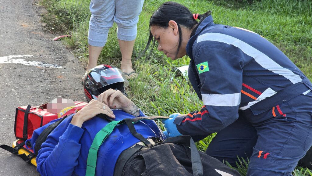 Imagens de uma câmera de segurança instalada nas proximidades registraram o momento do acidente. A motocicleta colidiu frontalmente com o veículo envolvido, e o motociclista foi arremessado por diversos metros, sofrendo múltiplos ferimentos.
