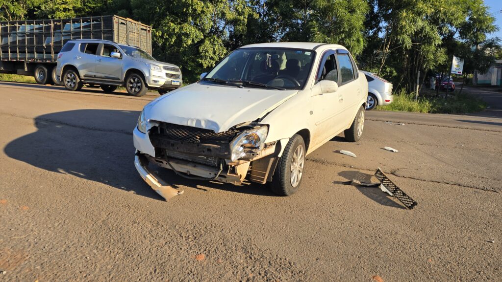Na manhã desta segunda-feira (2), um acidente de trânsito foi registrado na ERS-324, no cruzamento localizado na entrada do bairro Menino Deus, em Passo Fundo, em frente ao Centro de Eventos da Associação dos Funcionários do Hospital São Vicente de Paulo.