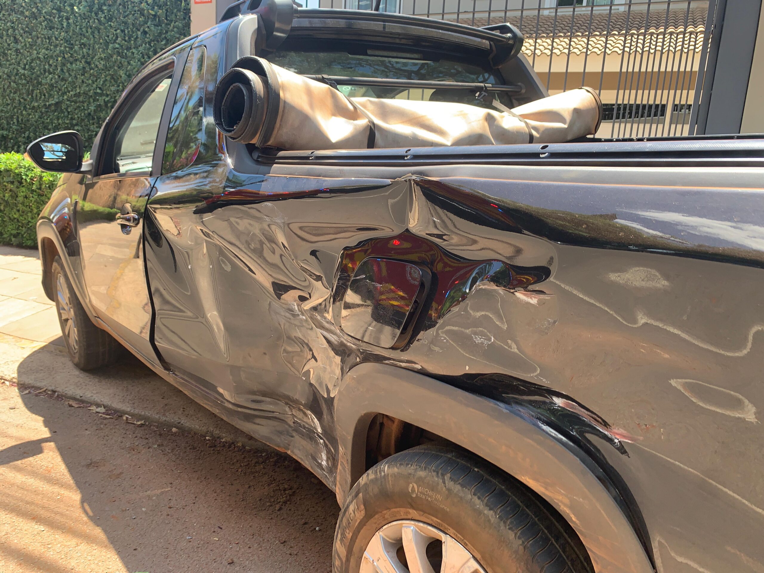 O Honda WR-V apresentou danos de grande monta na parte frontal. O Fiat Strada teve danos na lateral do lado do condutor.