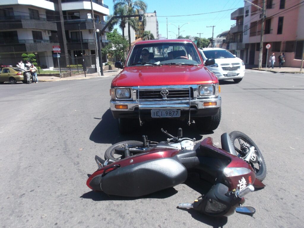 Por volta do meio dia desta quarta-feira um acidente envolvendo uma caminhonete e uma motocicleta foi registrado na rua Teixeira Soares, esquina com a Sete de Setembro.