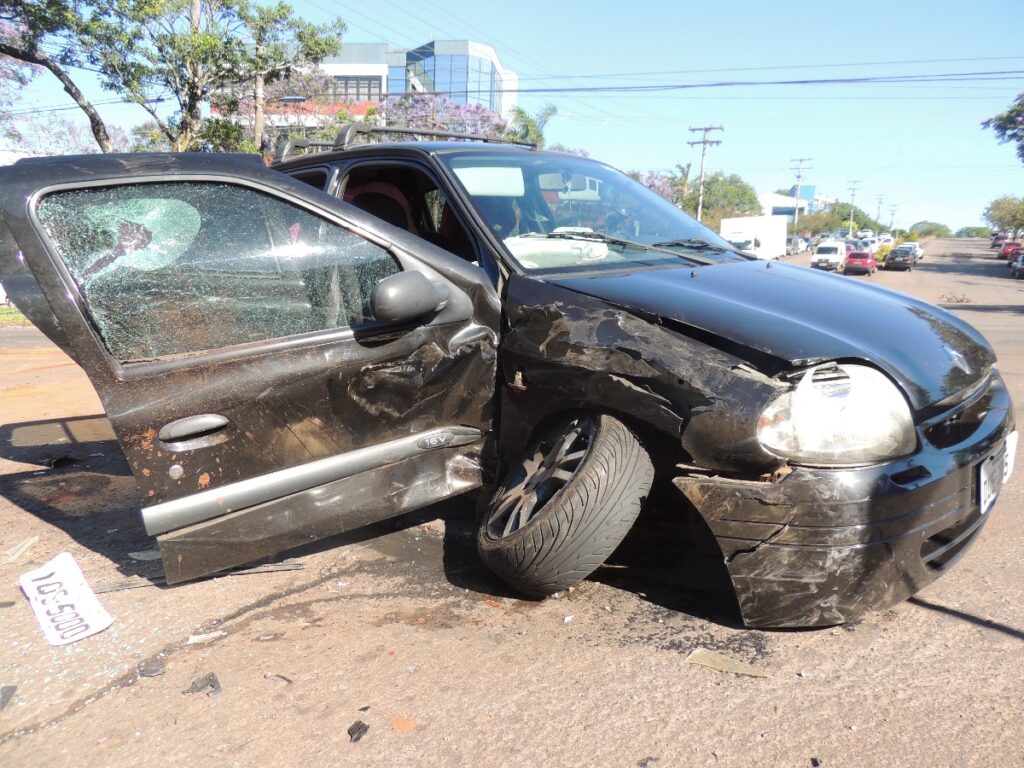 Um Renault/Clio de cor preta e placas de Porto Alegre e uma camioneta Fiat/Strada, também de cor preta, e placas de Passo Fundo, se envolveram em um acidente no cruzamento da av. Brasil Leste com a rua Verdi de Cesaro, por volta das 9h10 de segunda-feira, 18. De acordo com as informações obtidas no local, o motorista do Renaul/Clio, um homem de 44 anos, que trafegava pela Verdi de Cesaro, teria invadido a preferencial na av. Brasil, quando foi atingido pela camioneta. No Clio, além do homem, estavam sua esposa, de 33 anos e duas crianças, filhos do casal, de 7 anos e um ano e meio. A família reside em Carazinho e ninguém ficou ferido. Na Fiat/Strada, que pertence a uma empresa que trabalha com implementos agrícolas, estavam dois funcionários, que nada sofreram. O impacto da colisão fez com que o eixo dianteiro do Clio se partisse. Foram registrados apenas danos materiais.