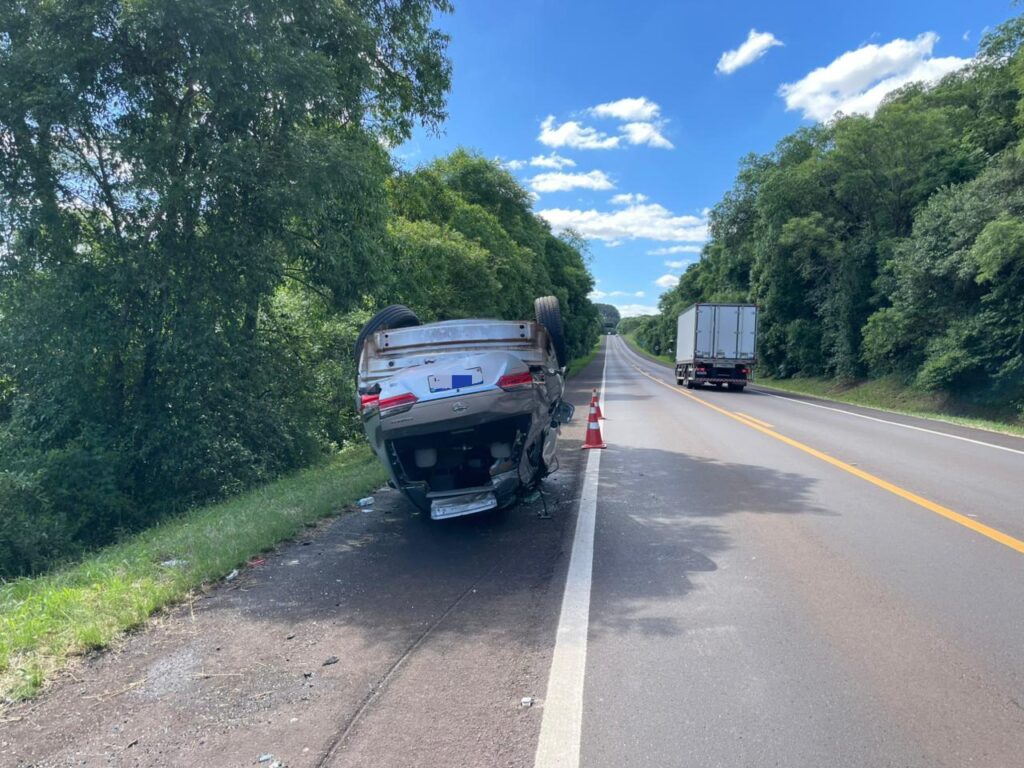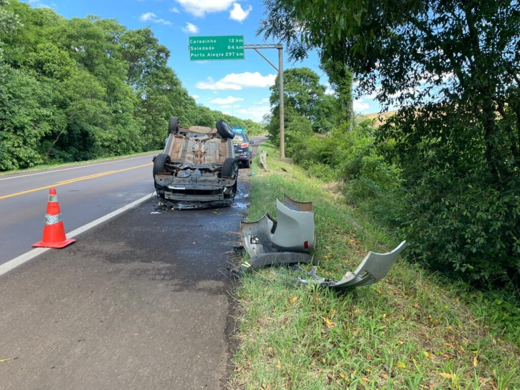 Na tarde desta terça-feira (18), um acidente de trânsito deixou dois adultos e uma criança feridos no km 164 da BR-386, em Carazinho. O veículo envolvido, um Toyota Corolla, capotou após o motorista perder o controle da direção.