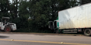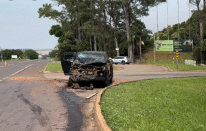 O acidente envolveu um caminhão baú com placas de Cascavel (PR) e uma camionete S10. Com o impacto, a camionete ficou com grandes danos, e todos os airbags foram acionados.