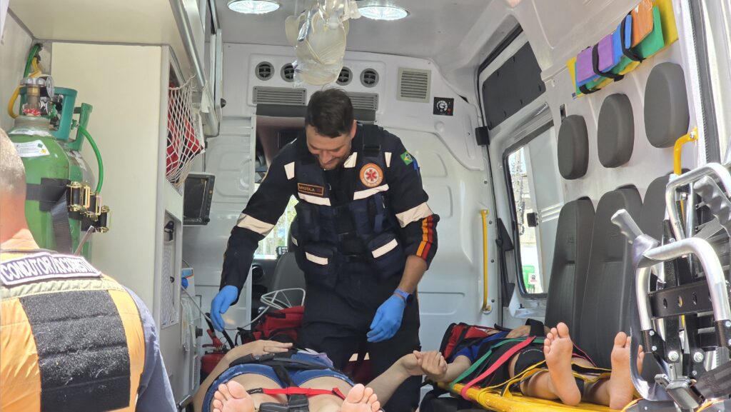 As vítimas sofreram ferimentos leves e foram encaminhadas pelo SAMU ao Hospital São Vicente de Paulo, em estado estável. O condutor do carro permaneceu no local e acionou o socorro.