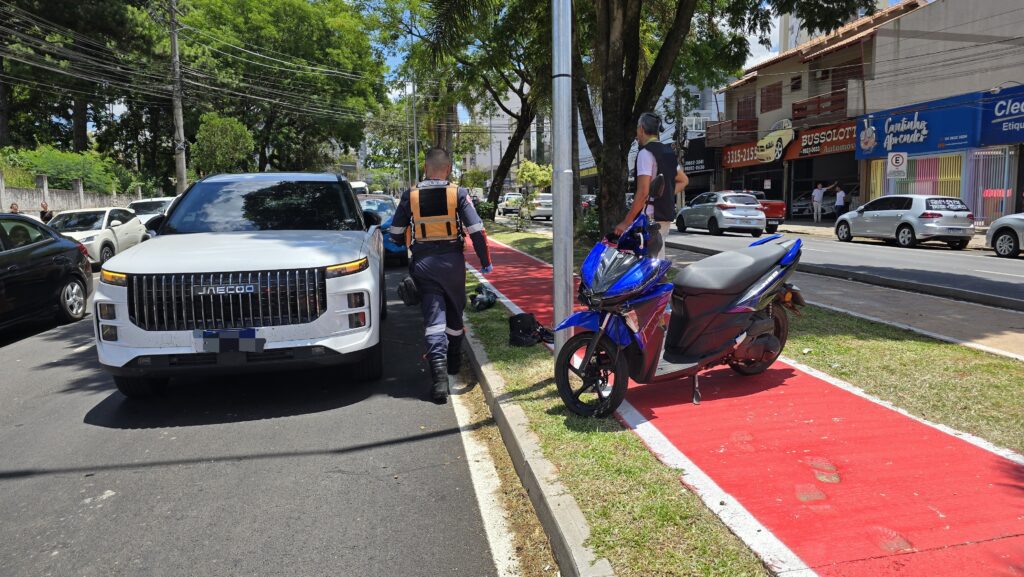 No início da tarde deste sábado (29), um acidente foi registrado na avenida Presidente Vargas, em Passo Fundo, próximo ao bairro São Cristóvão. Um veículo Jaecoo, de cor branca e placas padrão Mercosul, seguia no sentido centro-bairro quando uma motocicleta Yamaha LED, azul, conduzida por uma mulher com uma criança de carona, trafegava pelo corredor da avenida entre os veículos.