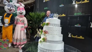 O casal de coelhos marcou presença, reforçando o convite para a Toca do Coelho Tapera. A programação terá início no dia 26/03, com a encenação de Páscoa, no Centro de Eventos. De 27/03 a 05/04, as atividades acontecerão no Tenarião. A maior parte da programação será gratuita, com exceção da visitação aos cenários.